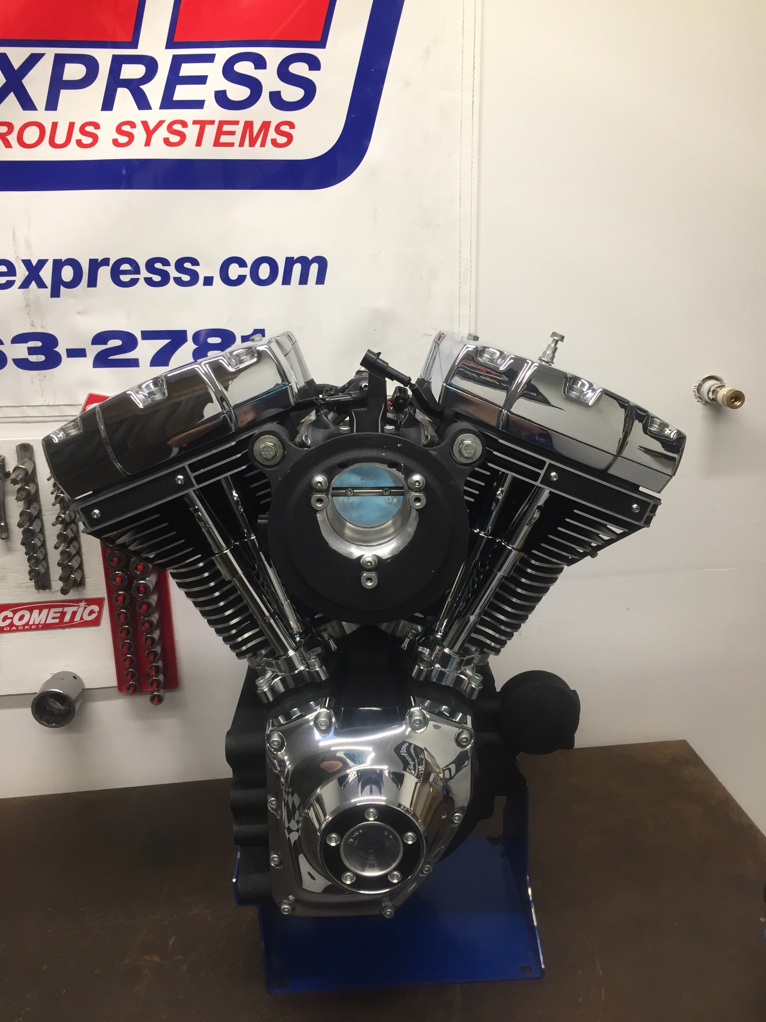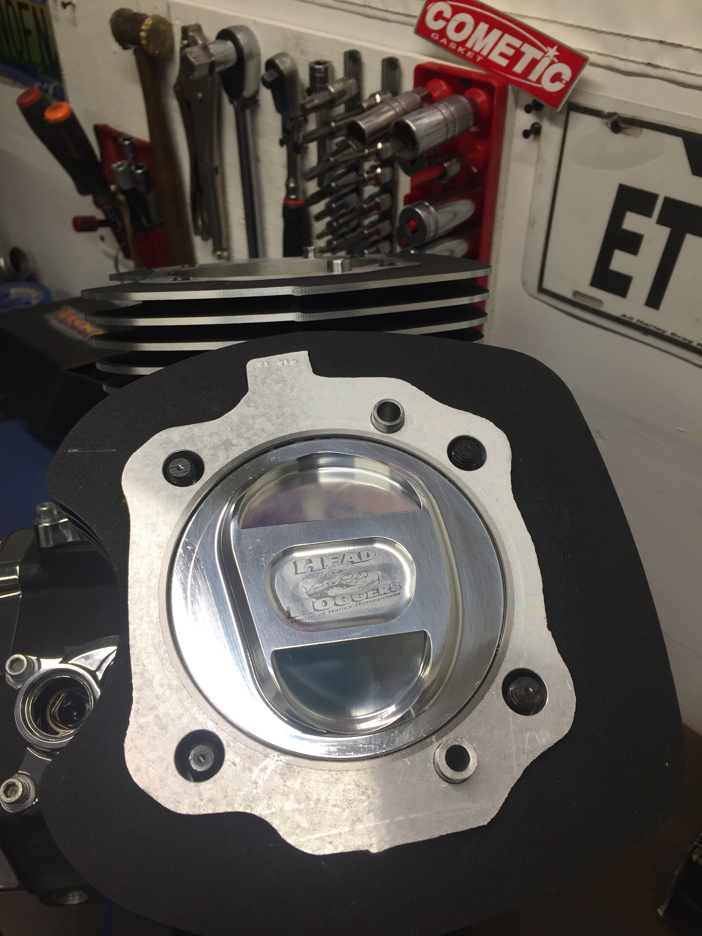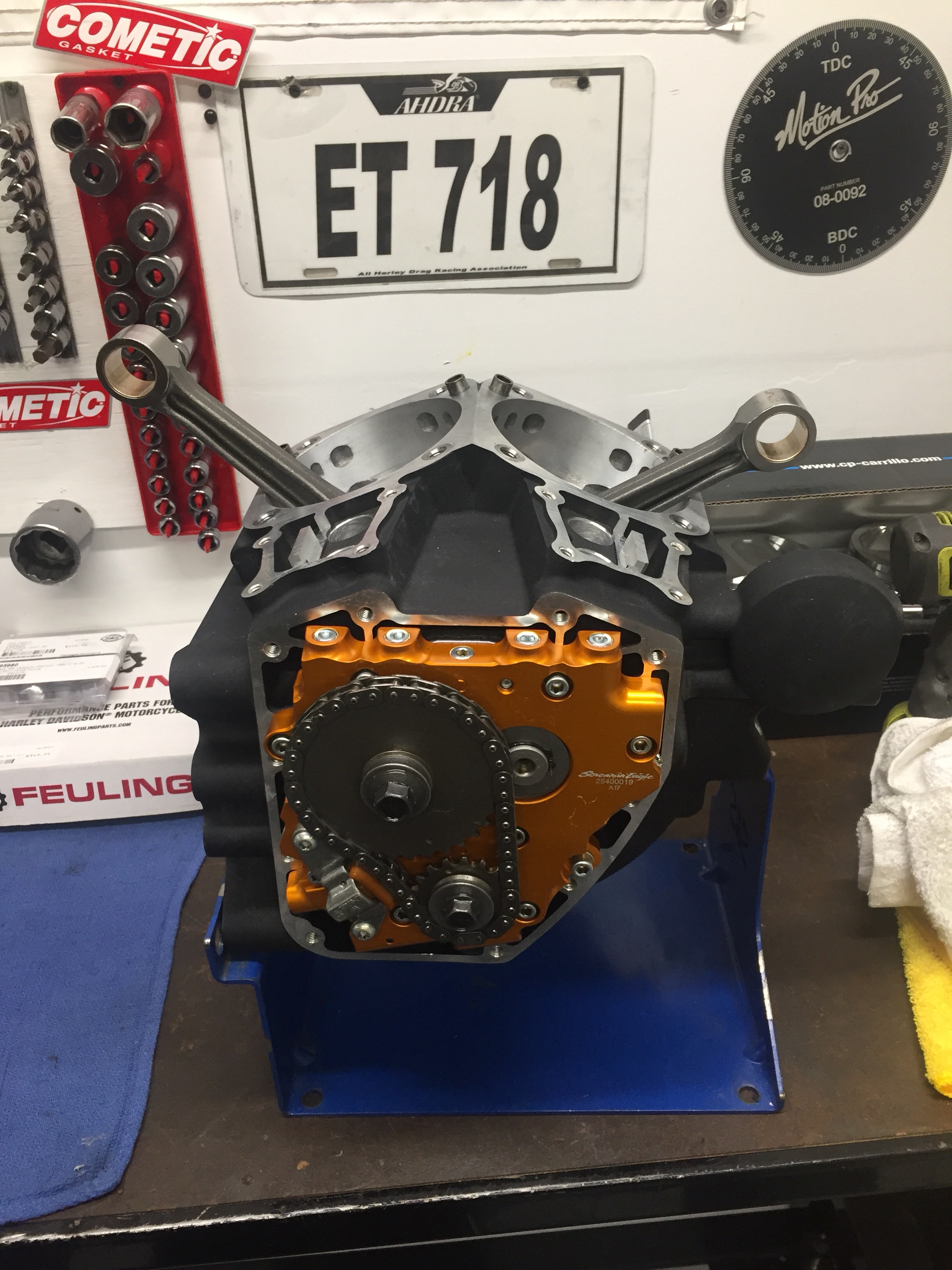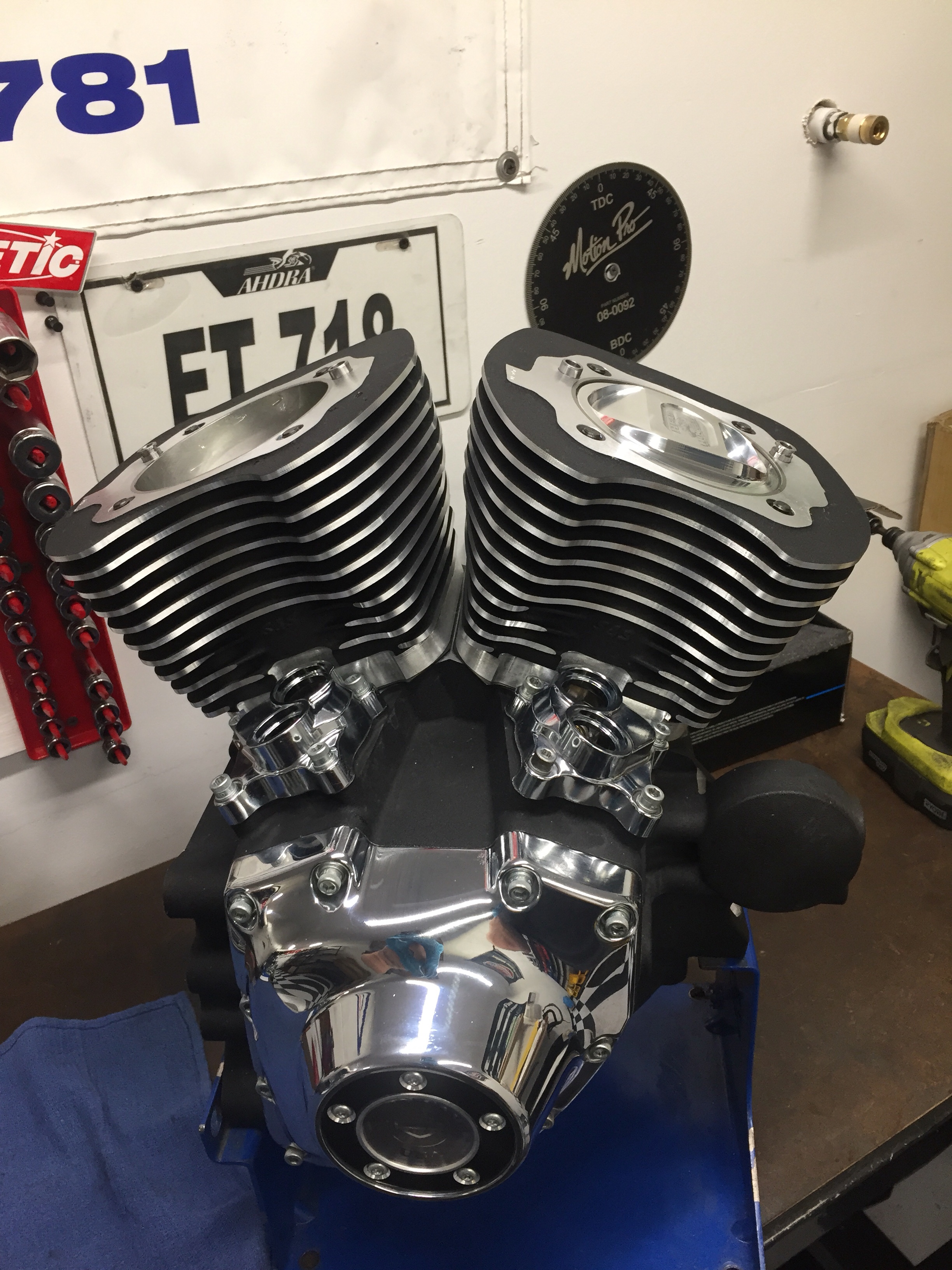 We are hard at it. Got some help today from my friend Kenny branch today. Got engine kit done and installed in a bike in service, just waiting on powder coat to wrap it up. Got this beast 124″ clearance checked and assembled. Ready to go back in bike. Got 3 other cases bored for big inch kits. Man I’m tired. Lol. All good, gotta keep going.